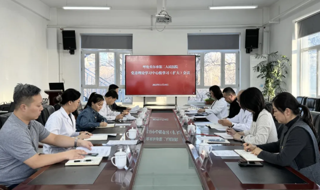 为深入学习贯彻党的二十届四中全会精神,统一思想、凝聚共识,11月19日,呼伦贝尔市第二人民医院党委召开理论学习中心组(扩大)会议,集中开展专题学习,并围绕深入学习贯彻党的二十届四中全会精神进行研讨交流。院党委理论学习中心组成员、各党支部书记参加会议。